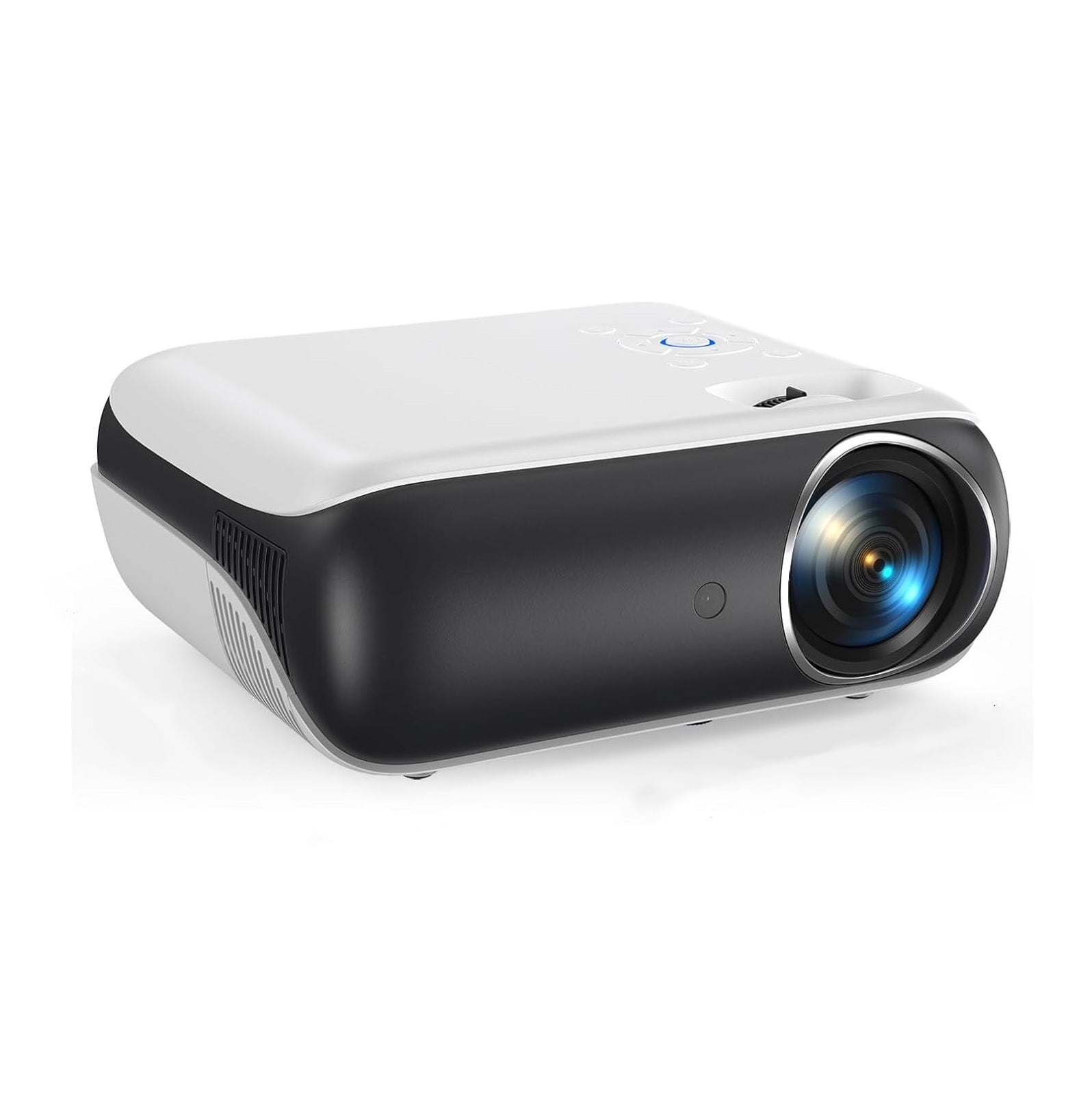 Proyector Potente, Ligero y Portátil - FHD 1080p - Pantalla hasta 200” - Plug & Play - 1026 Lúmenes - Bluetooth - HDMI, USB, AV - Altavoz integrado - Compatible con Consolas, Smartphone, PC, Laptop, Tv Box, Fire Stick y más - Blanco con Negro