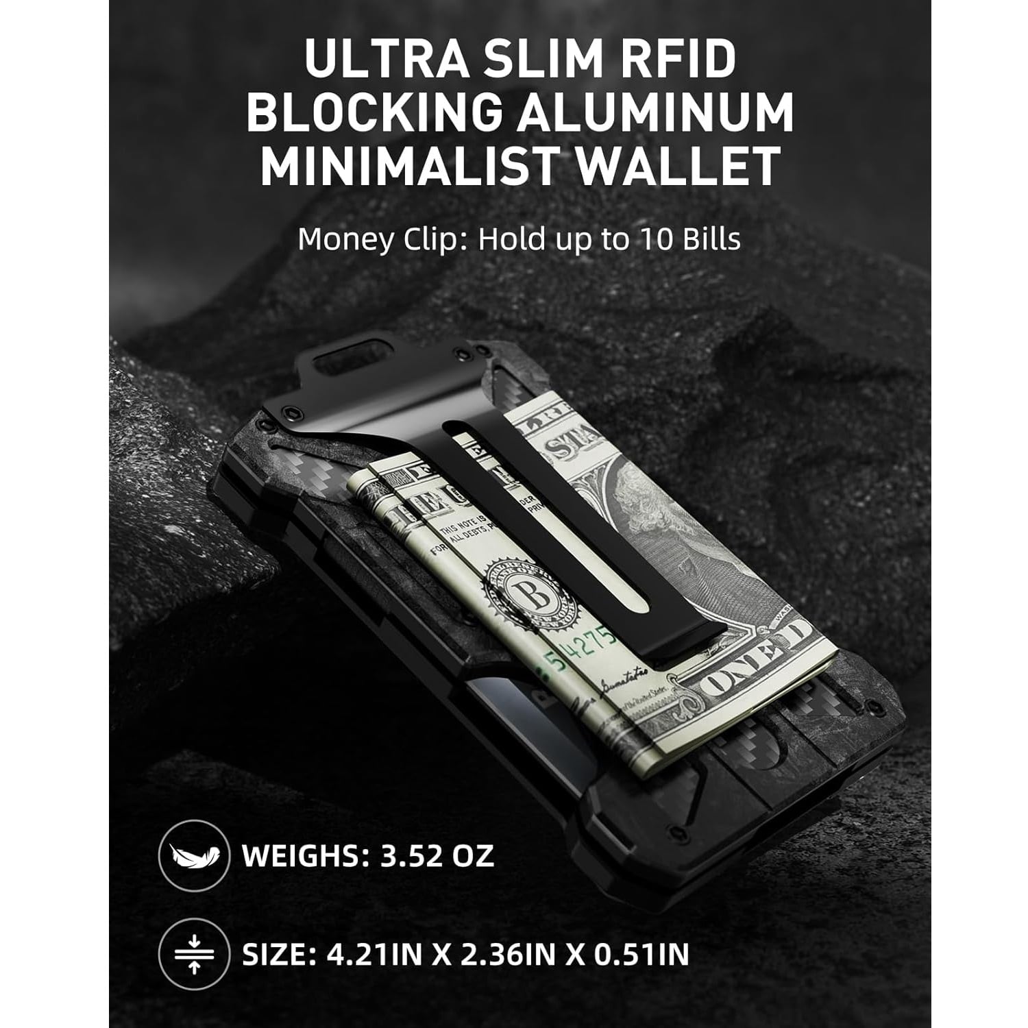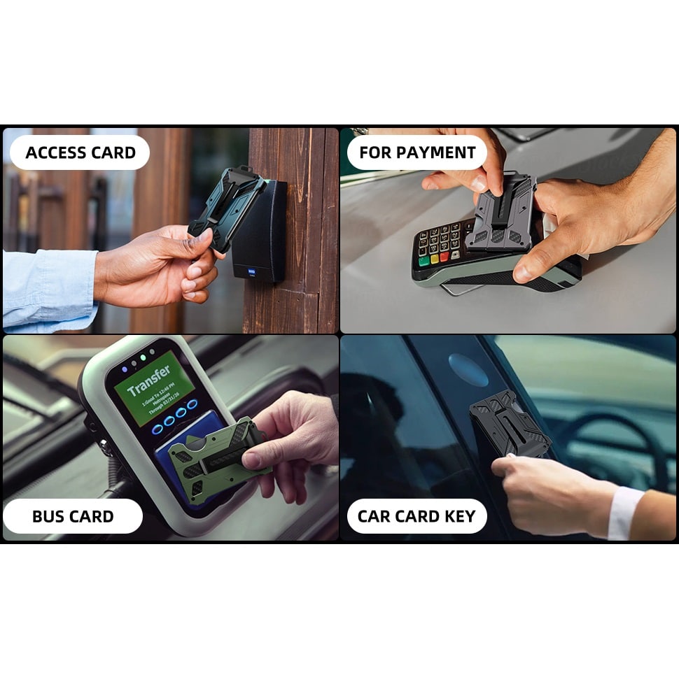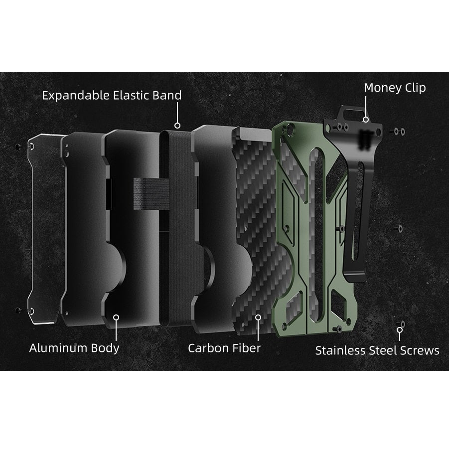🔹Su estructura de aleación de aluminio forjado y resistente proporciona mayor durabilidad y ahorro de peso sobre una billetera tradicional.