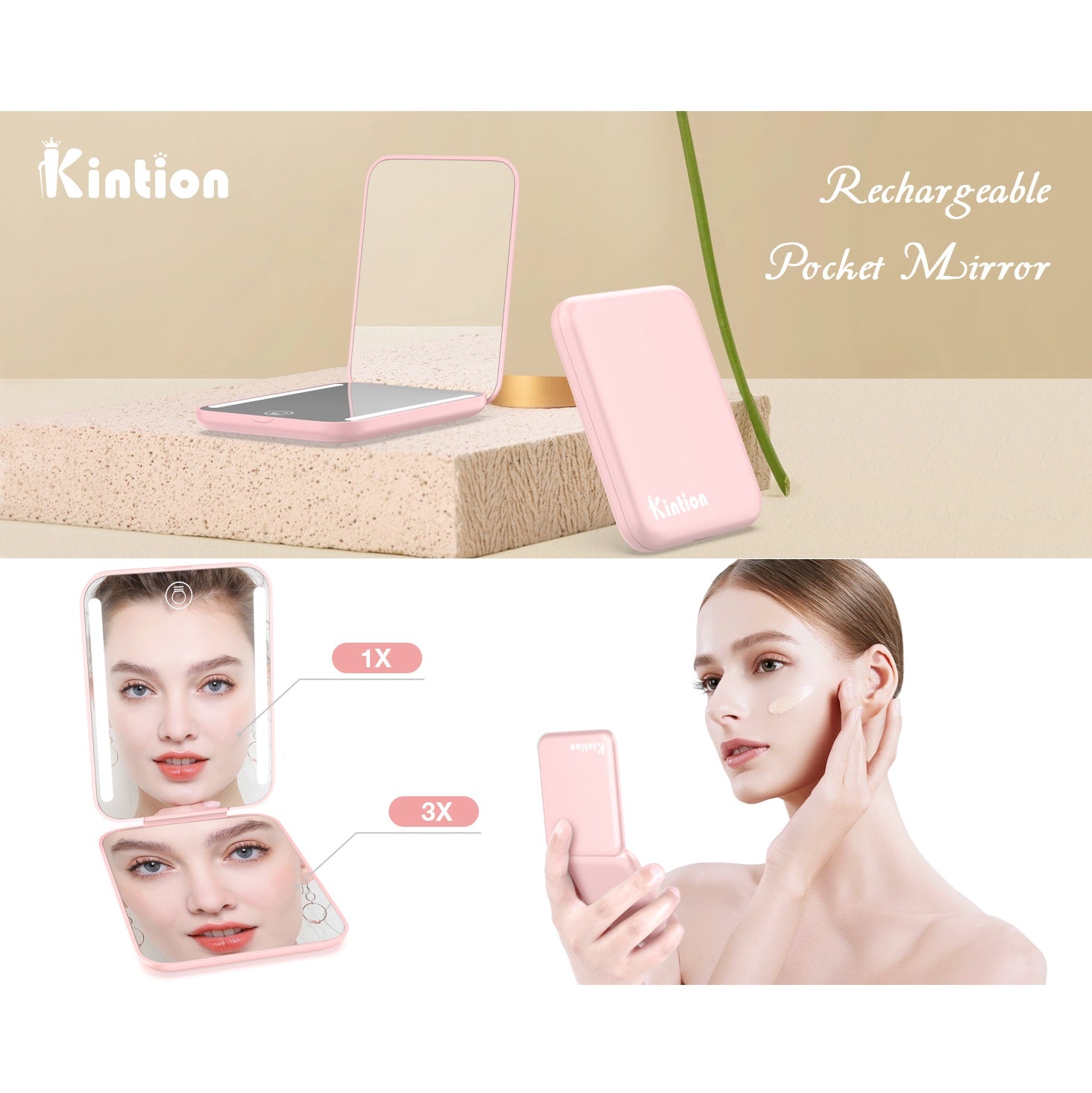 El Kintion Espejo de Bolsillo Recargable no solo es práctico y portátil, sino que también eleva tu experiencia de maquillaje con su iluminación precisa y diseño funcional.