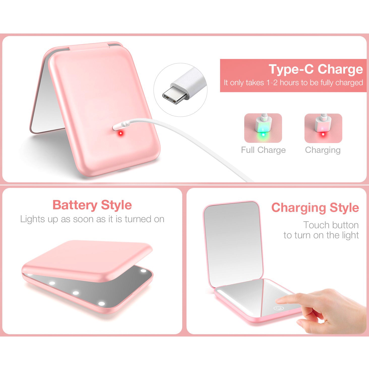 Espejo Compacto Recargable con Luz LED 3 Tonos