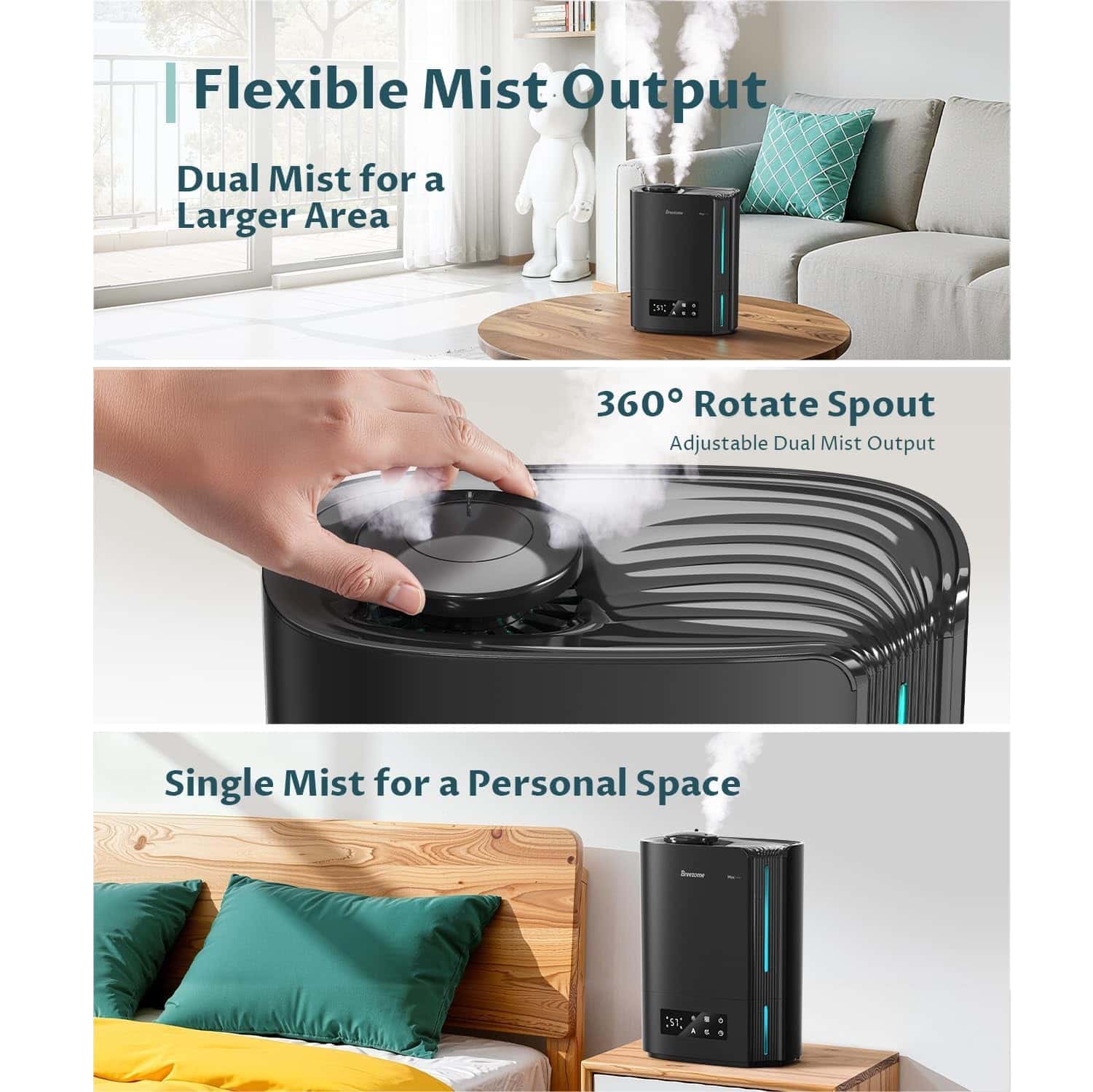 💡 Su diseño de relleno superior te permite añadir agua fácilmente sin derrames, mientras su pantalla táctil intuitiva y boquillas de 360° distribuyen uniformemente la niebla. ¡Es el aliado perfecto para crear un ambiente más saludable y confortable cada día!